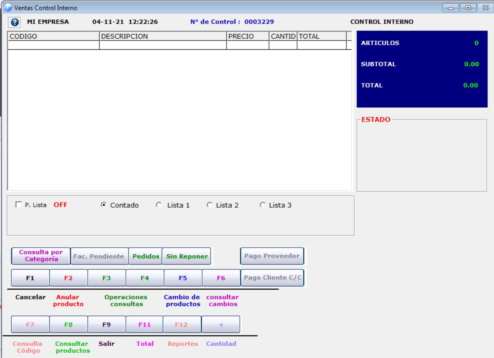 Desde aquí podrá completar la información de tus productos, configurar el acceso a los servidores de Afip, establecer el coeficiente de tarjeta y débito, cargar información de la empresa y gestionar tu stock.